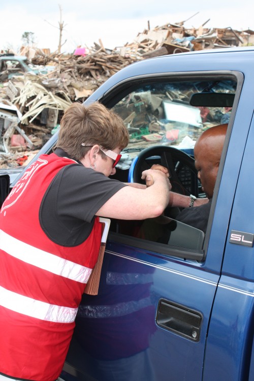 Arkansas-Oklahoma Division Director of Communications Cindy Fuller asked if she could pray with him when the traffic jam was just beginning to clear. “Of course,” he said. Then Cindy and Eickey bowed their heads and prayed together for healing and hope for all affected.