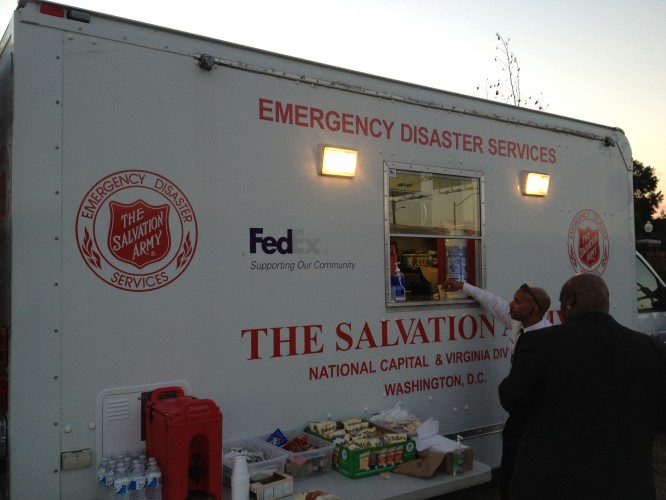 The Salvation Army responded swiftly on September 16 to news of the tragic shooting at the Washington Navy Yard. National Capital Area Commander Major Lewis Reckline oversaw deployment of Emergency Disaster Services equipment and personnel to Southeast DC. The team of Corps officers brought food, hydration and prayers of support for the first responders involved in Monday’s crisis.