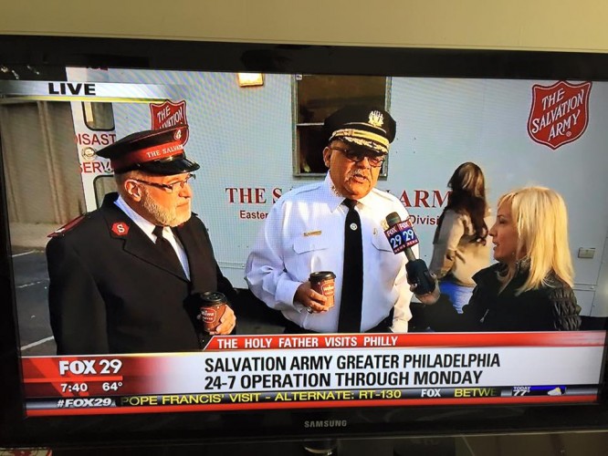 Through our Emergency Disaster Services program, The Salvation Army Eastern Pennsylvania and Delaware Division will provide food, drink and other necessities at sites across the City of Philadelphia to nearly 10,000 law enforcement, first responders and municipal workers during the Papal visit to Philadelphia. 127 staff, officer, and volunteers will participate in the 24-7 operation from Thursday, September 24 through Monday, September 28.