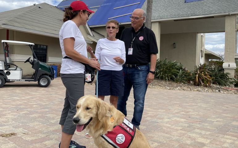 Fort Myers, FL – One nonprofit is partnering with The Salvation Army and using the power of puppy love to bring emotional relief to survivors of Hurricane Ian. On Saturday, a Golden Labrador Retriever named Dunkin toured around homes near Fort Myers Beach where survivors were cleaning out the first floor of condos that were inundated by 3 to 4 feet of storm surge.