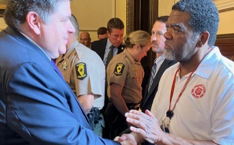Chicago, IL - Salvation Army volunteer Gary Spaulding, from the Springfield EDS team, was honored and recognized by Illinois Governor JB Pritzker for his service during the I-55 dust storm that took place in the Divernon, Illinois area on Monday, May 1.